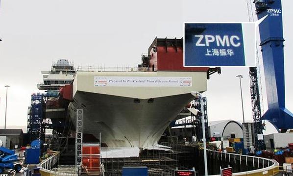 據(jù)悉,2014年,在英國“伊麗莎白女王”號(hào)航母的下水儀式上,“伊麗莎白女王”號(hào)航母所在船塢組裝用的重型龍門吊車,卻赫然印著“上海振華”的漢字字樣。據(jù)媒體相關(guān)報(bào)道,英國建造伊麗莎白級(jí)航母所使用的橋吊,正是由中國上海振華重工公司制造。據(jù)了解,英國在“伊麗莎白女王”級(jí)航母建造中的巨型總段建造法?!耙聋惿着酢碧?hào)的艦體被分為6個(gè)超級(jí)巨型艦體總段(其最重一個(gè)達(dá)到了11300噸)、6個(gè)中間分段、12個(gè)舷臺(tái)分段和2個(gè)上層建筑分段,分別由在德文郡、泰思賽德、格拉斯哥和樸次茅斯等地的4家公司約6個(gè)造船廠分別建造完成,每家船廠都各自完成切割鋼板、部件組裝、分段組裝、總段合攏、舾裝,甚至對(duì)已經(jīng)形成系統(tǒng)的單元進(jìn)行通電調(diào)試。