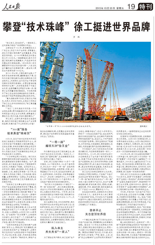“‘徐工’二字代表的不僅僅是一個行業(yè)領先品牌,更代表著誠信為本、自主創(chuàng)新和艱苦奮斗的企業(yè)文化特質,凝聚著徐工勇擔大任、恪行大道、終成大器的精華?!?nbsp;
