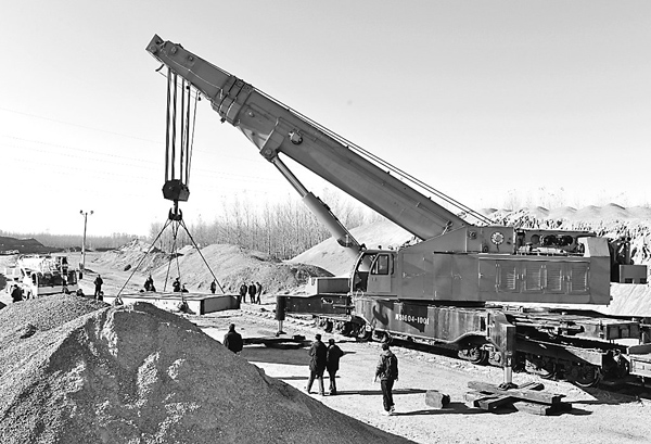 圖為1700噸米鐵路起重機(jī)進(jìn)行吊裝作業(yè)。