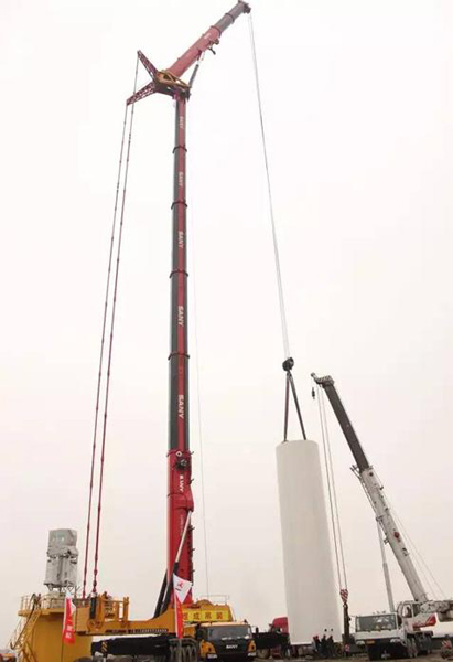 2012年,我國(guó)已成為風(fēng)電裝機(jī)排名全球第一的風(fēng)電大國(guó),根據(jù)全球風(fēng)能理事會(huì)的最新統(tǒng)計(jì),2014年,我國(guó)全年新增風(fēng)電裝機(jī)容量為23.351GW,是全球風(fēng)電增長(zhǎng)最快的國(guó)家,隨著風(fēng)電機(jī)組技術(shù)逐漸發(fā)展成熟,陸上風(fēng)電機(jī)組的容量已經(jīng)發(fā)展到1.5MW、2MW、3MW,機(jī)艙及塔筒的重量有很大的增長(zhǎng)。與此同時(shí),風(fēng)場(chǎng)集中在Ⅲ、Ⅳ級(jí)丘陵及山地風(fēng)場(chǎng),道路的開(kāi)山成本高,坡度大。三一重起根據(jù)現(xiàn)有風(fēng)力發(fā)電機(jī)組的吊裝要求,集合了現(xiàn)有吊裝機(jī)械的優(yōu)點(diǎn),研發(fā)出專(zhuān)用的風(fēng)力發(fā)電機(jī)組——吊裝起重機(jī)SCC1020。