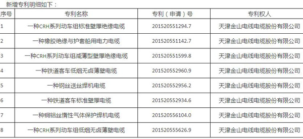 金山線纜科技創(chuàng)新結(jié)碩果 2015年度新增專利8項(xiàng)