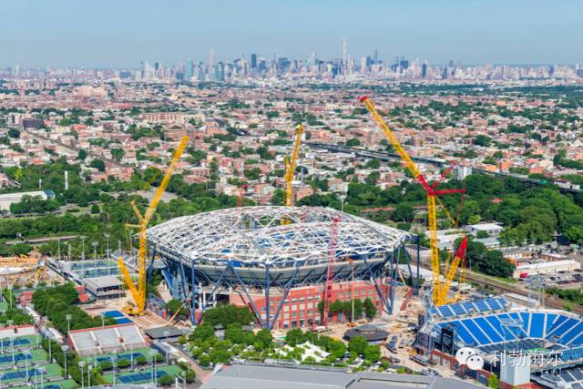 這三臺(tái)重型起重機(jī)自2014年10月至2015年7月完成了屋頂搭建。美網(wǎng)一般在9月舉行,這也保證了2015年美網(wǎng)公開賽的順利舉行。