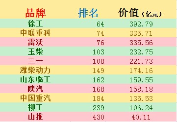 二、徐工品牌價(jià)值392.79億元行業(yè)居首。英國(guó)KHL發(fā)布最新全球工程機(jī)械排行榜徐工列中國(guó)第一