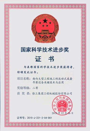12月16日,國(guó)務(wù)院頒發(fā)自然科學(xué)獎(jiǎng)、國(guó)家技術(shù)發(fā)明獎(jiǎng)、國(guó)家科學(xué)技術(shù)進(jìn)步獎(jiǎng)和國(guó)際科學(xué)技術(shù)合作獎(jiǎng)。徐工集團(tuán)“面向大型工程施工的流動(dòng)式成套吊裝設(shè)備關(guān)鍵技術(shù)與應(yīng)用”項(xiàng)目獲得2015年度國(guó)家科學(xué)技術(shù)進(jìn)步二等獎(jiǎng),是工程機(jī)械行業(yè)年度唯一獲獎(jiǎng)項(xiàng)目。