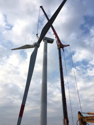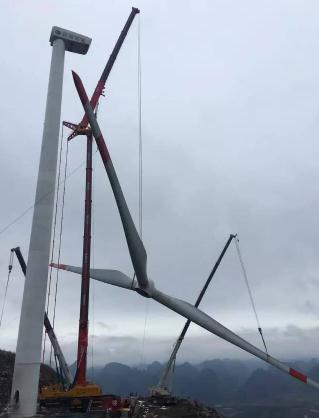 黑龍江省興安嶺風(fēng)電安裝股份有限公司于山東省萊西市河頭店鎮(zhèn)沃爾電力東大寨風(fēng)電場(chǎng)實(shí)地吊裝;金風(fēng)2.0MW機(jī)艙高度88米,發(fā)電機(jī)重量60噸,葉片重量62噸。