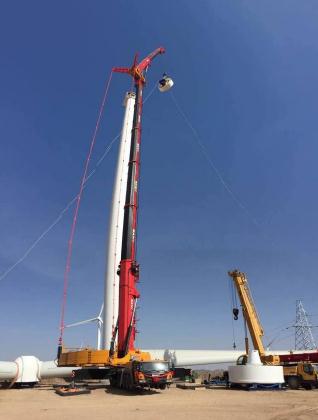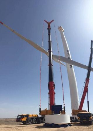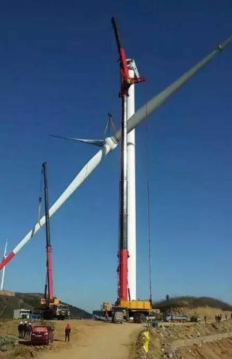 迎策電力工程有限公司于寧夏中寧京能風(fēng)電場實(shí)地吊裝檢修金風(fēng)2.0MW風(fēng)機(jī),電機(jī)50噸,葉片65噸。
