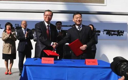 發(fā)布會(huì)現(xiàn)場,徐工集團(tuán)與中石化聯(lián)合簽署國際市場開拓戰(zhàn)略合作協(xié)議