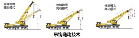 起重機(jī)臂架在變幅、伸縮時(shí),傳統(tǒng)起重機(jī)吊鉤不能隨著臂架動(dòng)作而隨時(shí)變化,導(dǎo)致吊鉤在臂架動(dòng)作前后位置發(fā)生很大變化。吊鉤隨動(dòng)技術(shù)很好的解決了這個(gè)問題,能確保在施工中,起重物不會(huì)發(fā)生較大幅度的位移,提高安全系數(shù)。