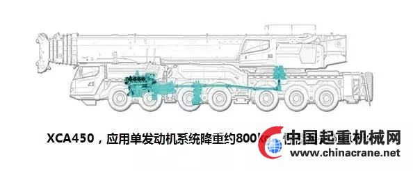 徐工XCA450是該項(xiàng)技術(shù)應(yīng)用的最好體現(xiàn),其整體性能接近徐工QAY500,但整車總質(zhì)量降低了800kg。