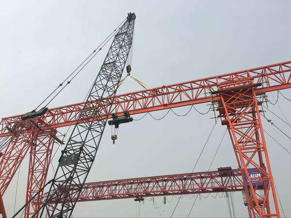 2016年4月12日8時(shí)30分,由中國(guó)能建安徽電建二公司承建的焦作丹河電廠異地?cái)U(kuò)建2×100萬(wàn)千瓦機(jī)組上大壓小工程#1標(biāo)段通用組合場(chǎng)20t/20m龍門吊順利安裝。