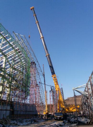 核心區(qū)世園會展館主體結(jié)構(gòu)已經(jīng)完成,鋼結(jié)構(gòu)框架跨度大,經(jīng)過組委會對現(xiàn)場多次考察實驗,徐工QAY500A全地面起重機(jī)以84米超長主臂、最小15米的小范圍轉(zhuǎn)場半徑和穩(wěn)定的作業(yè)性能脫穎而出。