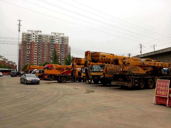 李小旺熱情地將我們帶到他的吊裝基地,一輛輛“戰(zhàn)馬”整齊地排成一排好像在歡迎主人檢閱。剛下完雨,工人師傅們正在給車輛保養(yǎng),愛車如子的他親自爬上車查看保養(yǎng)情況。保養(yǎng)完畢后它們將各自奔赴不同的戰(zhàn)場。
