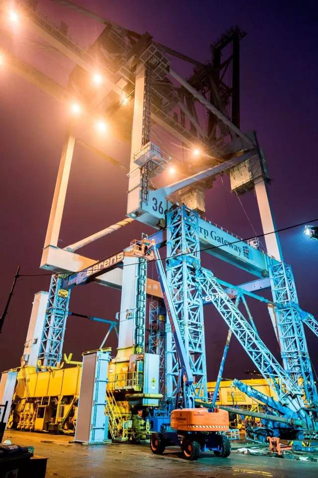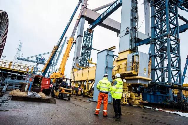 照片說明:2015年,卡爾瑪成功完成了DPW Antwerp Gateway的類似岸橋加高項目??柆斊鹬貦C升級團(tuán)隊在約定期限內(nèi)加高了三座卡爾瑪岸橋各6米。
