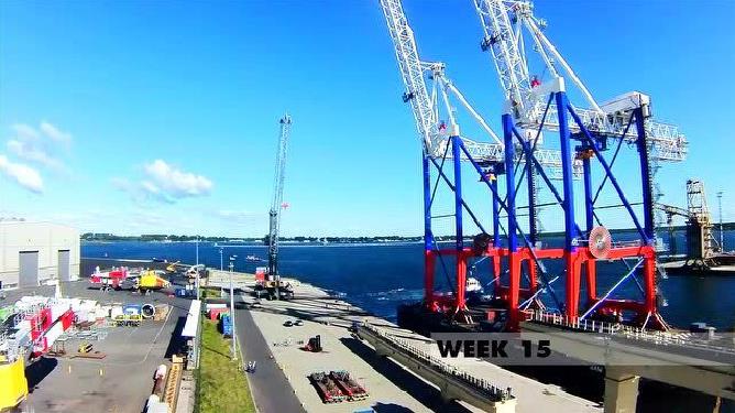 2015年夏天,四臺(tái)由利勃海爾愛爾蘭集裝箱起重機(jī)制造的橋吊在德國(guó)羅斯托克組裝。組裝完畢后,經(jīng)由波羅的海被送到位于俄羅斯圣彼得堡布隆卡港的菲尼克斯集裝箱碼頭。這些起重機(jī)的工作范圍有51米,雙吊具使其有65噸安全工作負(fù)荷。