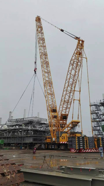 此次吊裝,現(xiàn)場采用超起重型主臂78米,超起配重320噸,輕松將重100余噸的平臺(tái)安裝至指定位置。徐工650噸履帶起重機(jī)出口印尼、烏拉圭、伊拉克等國家和地區(qū),參與風(fēng)電、石化、港口等項(xiàng)目的建設(shè),強(qiáng)悍的施工表現(xiàn)得到用戶的認(rèn)可。