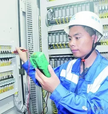 在距離地面50米高的鐵房子里,時(shí)而測(cè)量配電柜、錯(cuò)綜復(fù)雜線路的電流電壓,時(shí)而檢查電動(dòng)機(jī)、各種傳動(dòng)裝置的運(yùn)行情況。6月2日,記者來(lái)到太倉(cāng)正和碼頭有限公司采訪,看到安全保障部副經(jīng)理王永春正在給一臺(tái)岸橋檢查“心臟”。