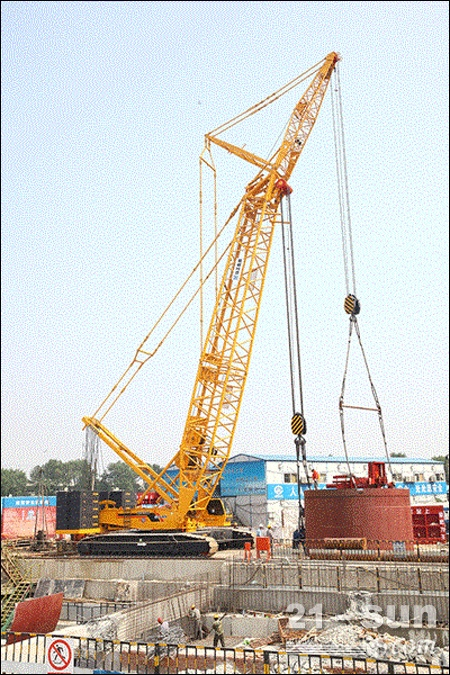 “重裝騎士”XGC300履帶吊天津地鐵6號線吊裝盾構(gòu)機(jī)特寫