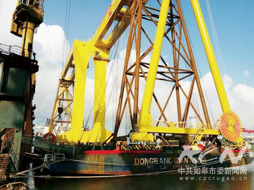 隨著如皋口岸外向型經(jīng)濟(jì)的不斷發(fā)展,對外經(jīng)濟(jì)已從單一的原材料進(jìn)口向出口型轉(zhuǎn)變,越來越多的各類新造船舶及大型設(shè)備開始從如皋口岸出口,今年已有平板駁船、海拖輪、淡水運輸船、汽油分餾塔等多種船舶與大型設(shè)備出口。圖為東邦巨人3號平板駁船正在運載大型龍門吊。
