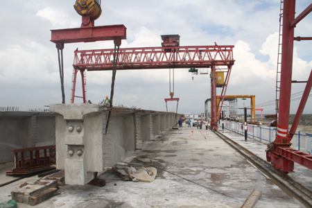 臺(tái)風(fēng)莫蘭蒂、馬勒卡相繼造訪東南沿海的間隙(巴曹項(xiàng)目駐地),17日上午天氣晴朗,風(fēng)力3-4級(jí),巴曹大橋技術(shù)負(fù)責(zé)人組織項(xiàng)目工程部、安質(zhì)部、物機(jī)部及作業(yè)隊(duì)特種工等人員進(jìn)行龍門(mén)吊試吊。