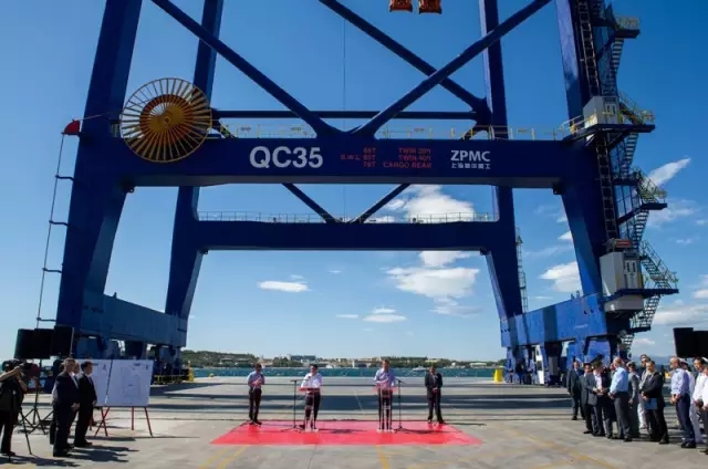 在這背后,振華重工港機(jī)產(chǎn)品功不可沒(méi),迄今為止,振華重工已為該港提供了23臺(tái)岸橋和16臺(tái)軌道吊,其中包括5臺(tái)雙起升岸橋,5臺(tái)同時(shí)裝卸可達(dá)到24小時(shí)內(nèi)4000至5000個(gè)裝卸箱量,能裝卸已經(jīng)投入使用的馬士基3E級(jí)集裝箱運(yùn)輸船,極大提高碼頭裝卸效率。