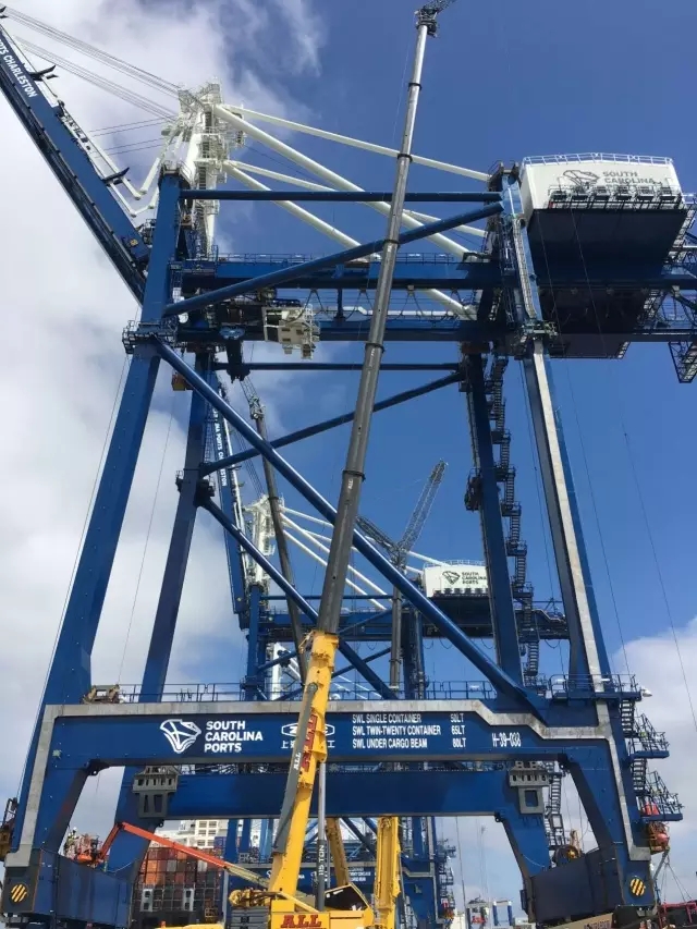 查爾斯頓岸橋正在上岸岸橋大梁提升作業(yè)中