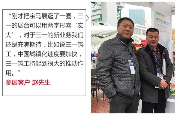 而寶馬展好不好,自說(shuō)自話都是空把戲,有最終發(fā)言權(quán)的還是三一客戶,小編在寶馬展現(xiàn)場(chǎng)隨機(jī)采訪了11位參展客戶,聽(tīng)聽(tīng)他們?nèi)绾慰慈粚汃R展。