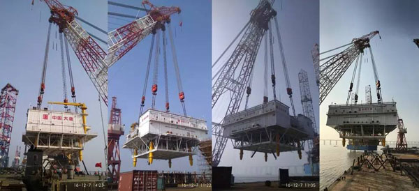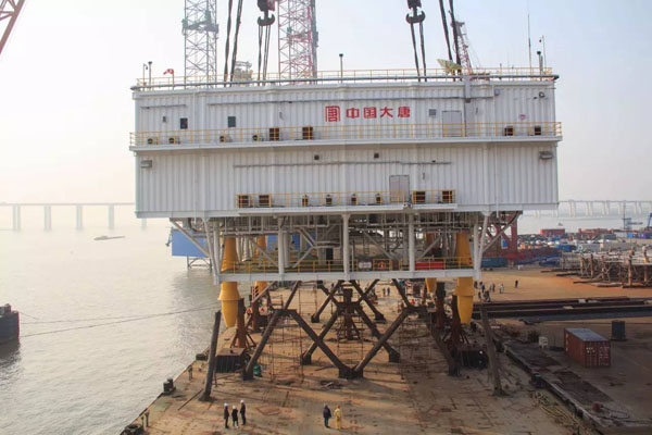 12月7日,振華重工為大唐新能源華東公司建造的大唐濱海220千伏/300兆瓦海上升壓站項目上部組塊在石油平臺及海上風電項目經(jīng)理部碼頭順利完成吊裝上船。
