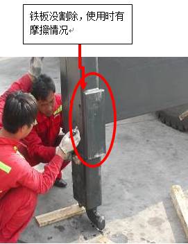1)吊具底部的鐵板沒(méi)有按照我們的建議割除,導(dǎo)致使用時(shí)有刮碰油漆的情況發(fā)生。如圖四所示;