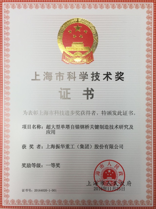 振華重工申報的《超大型單塔自錨鋼橋關(guān)鍵制造技術(shù)研究及應(yīng)用》項目榮獲上海市科技進(jìn)步一等獎,《海上風(fēng)電設(shè)備安裝平臺關(guān)鍵技術(shù)研究與應(yīng)用》項目榮獲上海市科技進(jìn)步三等獎。