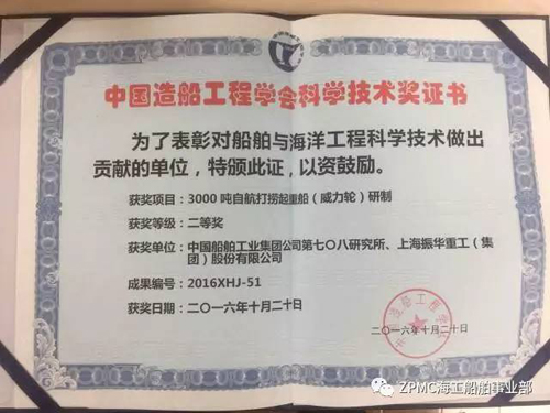 近日,中國造船工程學(xué)會表彰對船舶與海洋工程科學(xué)技術(shù)做出突出貢獻的單位,振華重工項目“威力”輪榮獲中國造船工程學(xué)會科學(xué)技術(shù)二等獎。