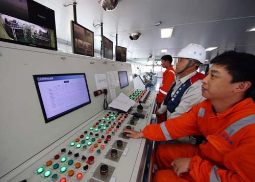 “振華30”不僅是國之重器,還是一艘高精尖的裝備,工作人員在操作室進(jìn)行遠(yuǎn)程操控,進(jìn)行厘米級的精確定位,來確保最終接頭的順利吊裝。