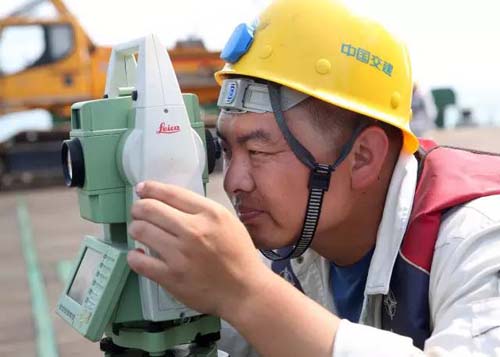 工作人員使用萊卡儀器進(jìn)行精確測量