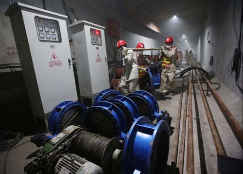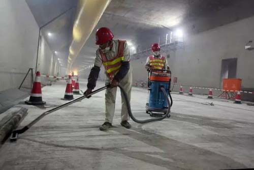 在沉管隧道內(nèi),作業(yè)人員及時清理施工帶來的粉塵