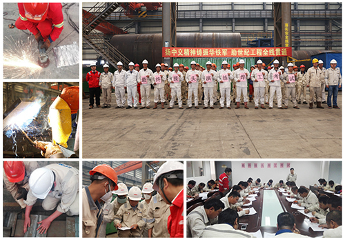 與此同時,在振華重工南通建造基地百余名工匠隊伍正在這里進(jìn)行最終接頭合龍焊接演練。