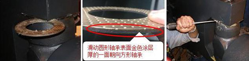 滑動(dòng)圓形軸承表面金色涂層厚的一面朝向方形軸承(A54104.0100)。