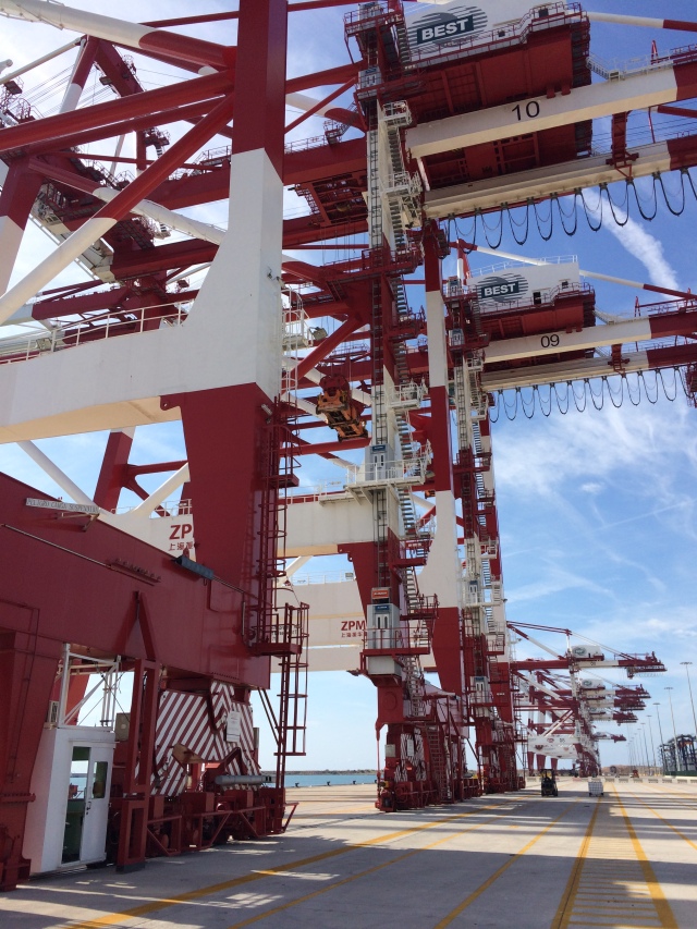 兩個(gè)碼頭都隸屬于和黃旗下,英國(guó)菲利斯通碼頭10臺(tái)岸橋加高項(xiàng)目是目前歐洲最大的岸橋加高項(xiàng)目,該項(xiàng)目分為2個(gè)階段,第一階段5臺(tái)岸橋加高9.25米,第二階段5臺(tái)岸橋加高5.25米。西班牙巴塞羅那BEST碼頭3臺(tái)岸橋加高高度為5米。