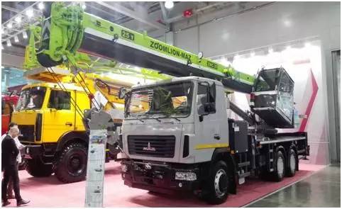 ▲中聯(lián)重科MAZ合資公司25噸汽車(chē)起重機(jī)亮相國(guó)際展會(huì)