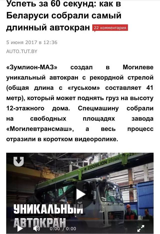 中聯(lián)重科相關(guān)技術(shù)負(fù)責(zé)人表示:“25噸級(jí)汽車(chē)起重機(jī)作為東歐市場(chǎng)保有量最大的產(chǎn)品之一,我們雙方團(tuán)隊(duì)都對(duì)該產(chǎn)品成為ZOOMLION-MAZ合資公司未來(lái)發(fā)展的戰(zhàn)略性產(chǎn)品充滿信心?!?