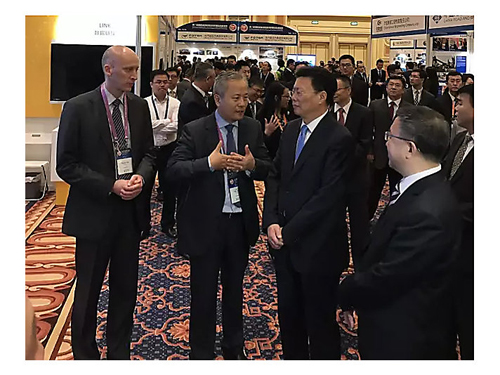 會(huì)議期間,我們的展位還迎來了中國商務(wù)部副部長兼國際貿(mào)易談判副代表俞建華先生的蒞臨參觀??ㄌ乇死占瘓F(tuán)總裁杜樂謙 (Bob De Lange)先生,與卡特彼勒全球副總裁、卡特彼勒(中國)投資有限公司董事長陳其華先生一起,向俞副部長詳細(xì)介紹了卡特彼勒“智能機(jī)器時(shí)代”數(shù)字技術(shù)戰(zhàn)略。俞副部長仔細(xì)聽取了介紹,并對卡特彼勒的持續(xù)創(chuàng)新予以充分肯定。雙方還在論壇期間進(jìn)行了友好會(huì)見,就卡特彼勒在中國的發(fā)展和中美經(jīng)貿(mào)合作等話題展開交流。俞副部長感謝卡特彼勒公司對“一帶一路”倡議的支持,表示希望卡特彼勒與中國的企業(yè)在“一帶一路”項(xiàng)目中有更多的合作,并高度評價(jià)卡特彼勒在促進(jìn)中美經(jīng)貿(mào)交流方面發(fā)揮的積極作用。