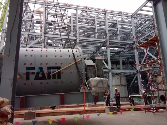 這次吊裝的設(shè)備棒磨機(jī)直徑2.8米,筒體長(zhǎng)3.75米,重39噸,并且需要在長(zhǎng)寬18米且三面是鋼結(jié)構(gòu)的空間內(nèi)進(jìn)行吊裝作業(yè)。這無(wú)疑對(duì)設(shè)備的吊裝性能、操作穩(wěn)定性及安全性提出了嚴(yán)苛的高要求。