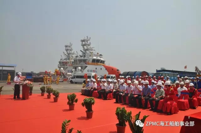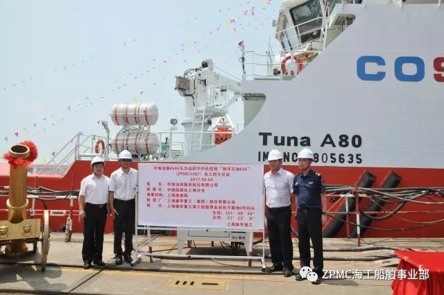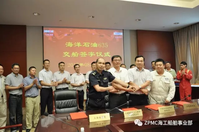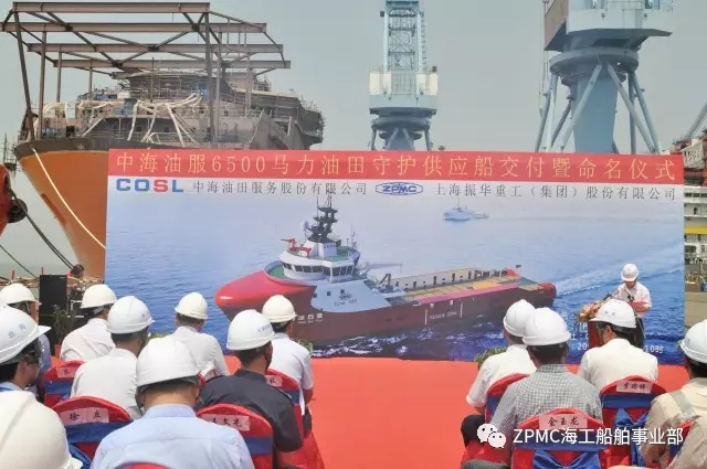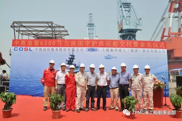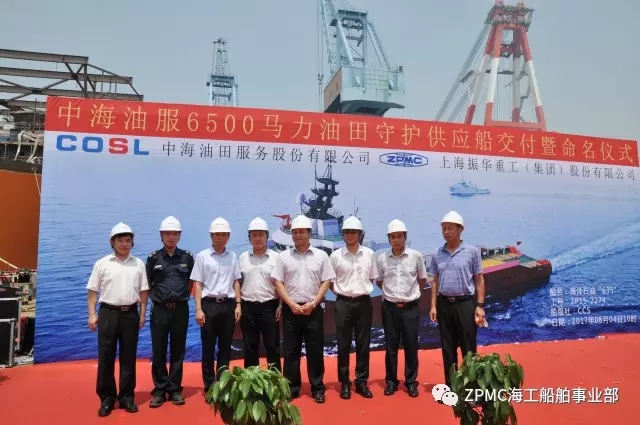 2017年8月4日,上午10時(shí)18分,中海油服6500馬力油田守護(hù)供應(yīng)船6號(hào)船--“海洋石油635”交付儀式在長(zhǎng)興基地隆重舉行,上海海事局、中海油服公司、中國(guó)船級(jí)社、SDARI設(shè)計(jì)院和振華重工代表共同見(jiàn)證了這一偉大時(shí)刻。