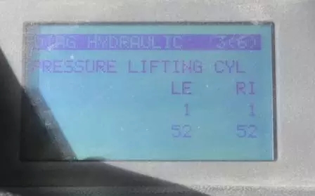 圖為診斷菜單中“HYD”項(xiàng)中的起升油缸左右側(cè)壓力值