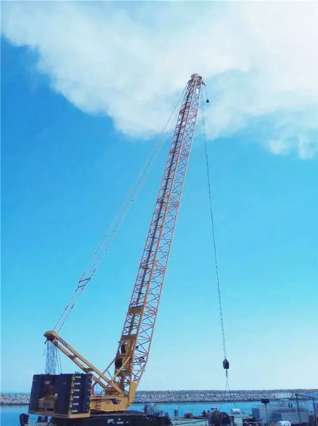 兩臺履帶起重機主要負責(zé)將預(yù)支水泥樁和石塊拋入海中,以構(gòu)筑港口的防波堤。別看只是一吊一拋的簡單動作,但是每天卻要重復(fù)幾百次,對起重機操作效率和穩(wěn)定性都提出極高的要求。作為“XGC”家族系列中“銷量”擔(dān)當(dāng),兩臺產(chǎn)品果然沒有令人失望,自投入使用以來,狀態(tài)良好,與同工地的國外品牌產(chǎn)品相比毫不遜色,甚至更勝一籌。兩臺產(chǎn)品的優(yōu)良表現(xiàn),也是獲得了工程業(yè)主方和使用客戶的一致好評。