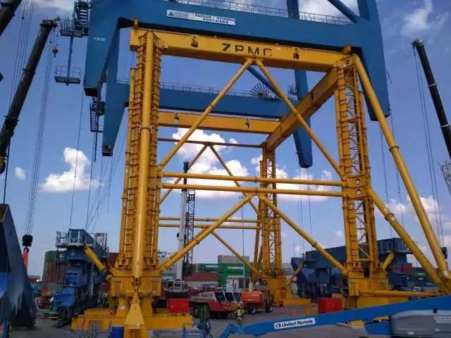 近日,位于美國(guó)南卡羅來(lái)納州查爾斯頓港的一臺(tái)岸橋,一次性長(zhǎng)高了13.1米,相當(dāng)于6個(gè)標(biāo)準(zhǔn)集裝箱的高度。長(zhǎng)高背后的秘密武器是ZPMC最新設(shè)計(jì)制造的落地式岸橋加高裝置,一次性將該臺(tái)岸橋的起升高度由原來(lái)的35米增加到48米。