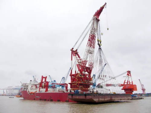 10月12日,煙臺德合號起重鋪管船所搭載5000噸起重機進行最終5630噸主鉤10%超載試重檢驗。試驗所有數(shù)據(jù)完全符合設(shè)計要求,并經(jīng)船級社ABS/CCS現(xiàn)場見證確認(rèn)結(jié)果。