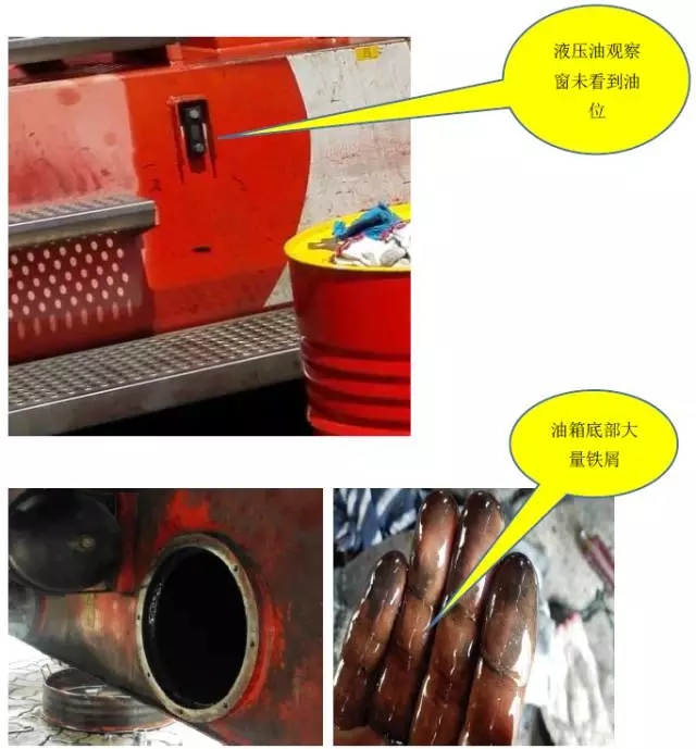 2.清洗液壓油箱時發(fā)現(xiàn)油箱底部有大量的鐵屑;