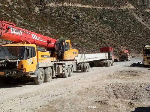 西藏地理?xiàng)l件特殊,每一座大型電塔安裝,起重機(jī)都需要“爬山下山”,嚴(yán)峻地理環(huán)境考驗(yàn)著每一臺(tái)設(shè)備的底盤性能和高海拔的運(yùn)作性能。在吉隆尼泊爾口岸項(xiàng)目建設(shè)中,三一STC800汽車起重機(jī)負(fù)責(zé)電塔安裝、拆卸、材料裝卸,STC800憑借強(qiáng)勁的底盤動(dòng)力和卓越的吊裝性能,完美的完成了施工任務(wù)。