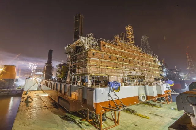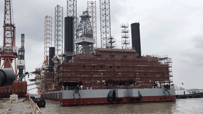 該平臺于2016年11月開工建造,2017年2月鋪龍骨,6月底完成主船體貫通。平臺下水是平臺建造的重大節(jié)點(diǎn)之一,后續(xù)將按計劃進(jìn)行全船調(diào)試、插樁、起重機(jī)安裝和全程爬升等動作。