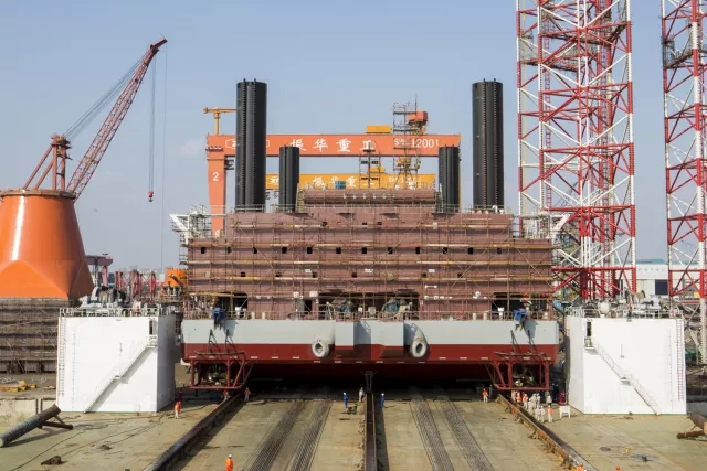 上海振華 世界最大風(fēng)電施工平臺順利滑移下水