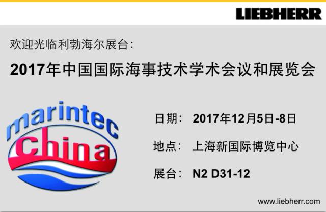 我們誠摯地歡迎您參觀利勃海爾Marintec China 2017展臺: